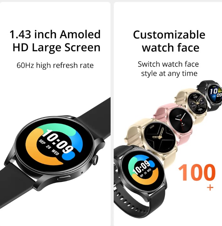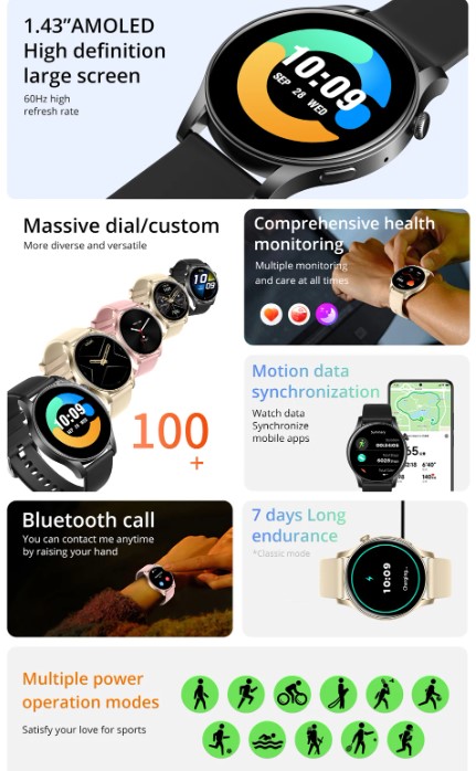Experience visual brilliance with the V73's 1.43" AMOLED display, boasting a crisp 466x466 pixel resolution. This cutting-edge screen delivers vivid colors and sharp details, creating an unmatched viewing experience. The always-on display function ensures you're always just a glance away from important information, while the ultra-narrow edge design maximizes screen real estate for a truly immersive experience.