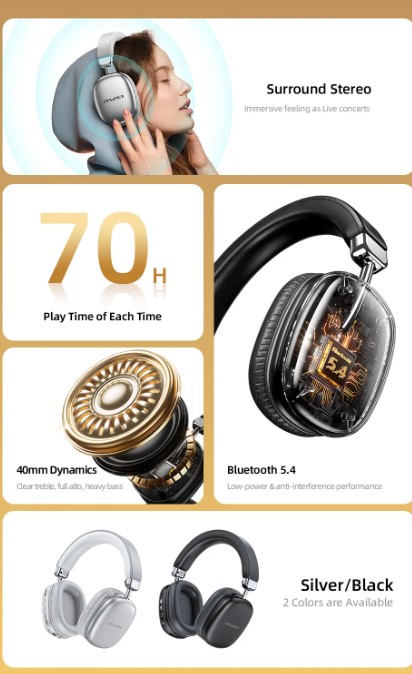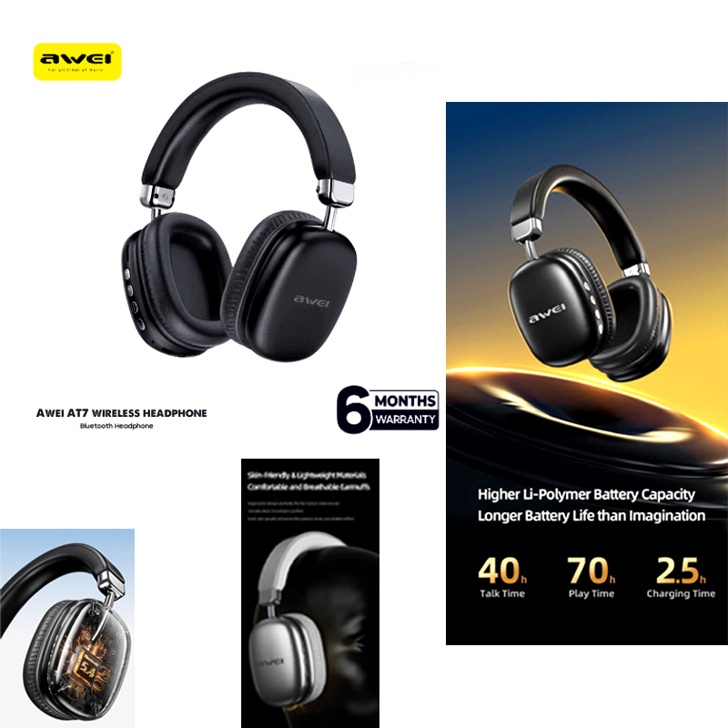 The Awei AT7 Stereo Wireless Bluetooth Headphone is engineered to provide an amazing listening experience with modern Bluetooth 5.4 technology, which supports a wide range of Bluetooth protocols for smooth communication. With a powerful 600mAh improved Li-polymer battery, The AT7 provides longer usage durations of up to 70 hours of music playing and 40 hours of talk time, letting you stay connected and engaged for days. The battery only takes 2.5 hours to completely charge, making it excellent for lengthy trips or longer usage without regular charges. The AT7's support for Micro-SD cards offers another level of adaptability, letting you to listen to music directly from a memory card. The 40mm drivers with 32Ω impedance and 121±3dB sensitivity produce strong, immersive stereo sound with enhanced bass and treble clarity, providing a rich audio experience. The optimal transmission distance is less than 1 meter, with a maximum transmission range of 10 meters, allowing flexibility and ease in wireless operation. The AT7 operates within the Bluetooth frequency range of 2.402GHz to 2.480GHz, ensuring seamless and stable connections while minimizing interference for clear audio. Whether for calls or music, this headphone's adaptable dual channel technology produces high-quality audio. The Awei AT7 is ideal for those that value long battery life, comfort, and great sound quality in their daily listening.